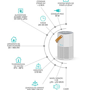 Cu sistemul sau avansat de purificare in 5 etape, acest dispozitiv inteligent aduce o noua dimensiune in ingrijirea aerului din casa ta: